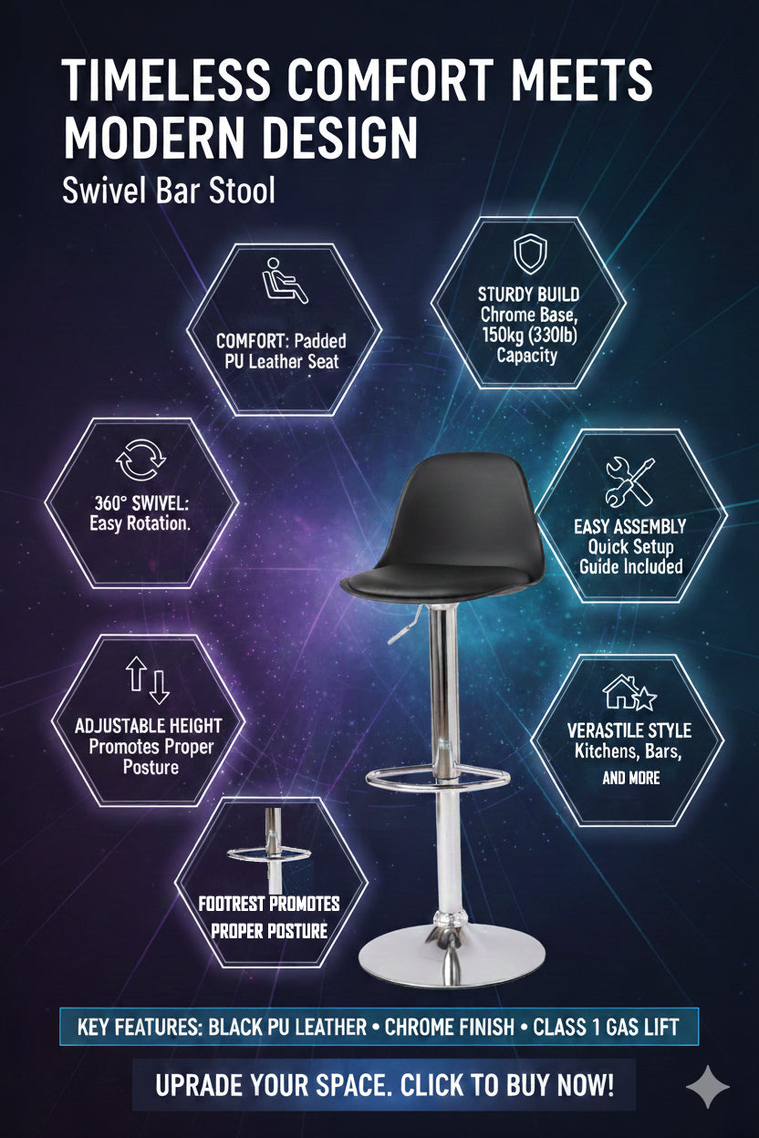 Design confortable – Cette chaise moderne en similicuir est spécialement conçue pour répondre à vos besoins de confort et d'élégance pour votre cuisine ou votre comptoir. Réglable en hauteur et dotée d'un repose-pieds, elle favorise une posture idéale pendant les repas et est suffisamment ferme et robuste pour un confort optimal. Elle est également pivotante.
