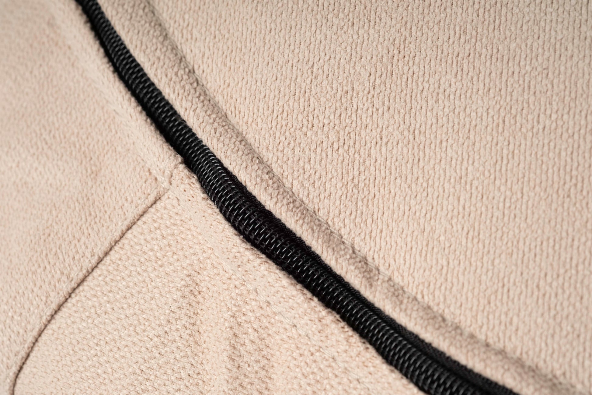 Premium fabrics — outer cover in ice velvet polyester linen (290 GSM) feels plush yet durable, while the mesh inner bag keeps the foam secure.