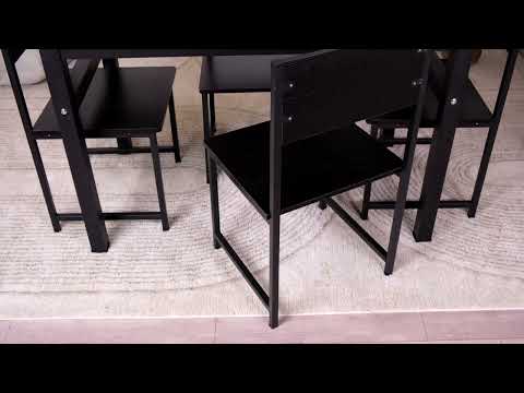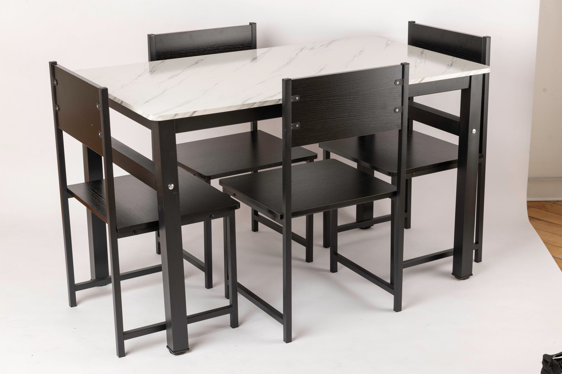 A modern 4-seat dining set with a marble-white tabletop, black steel legs, and matching black chairs — built for everyday family use and easy maintenance. Durable, stable, and stylish, it turns mealtime into a clean, comfortable experience.