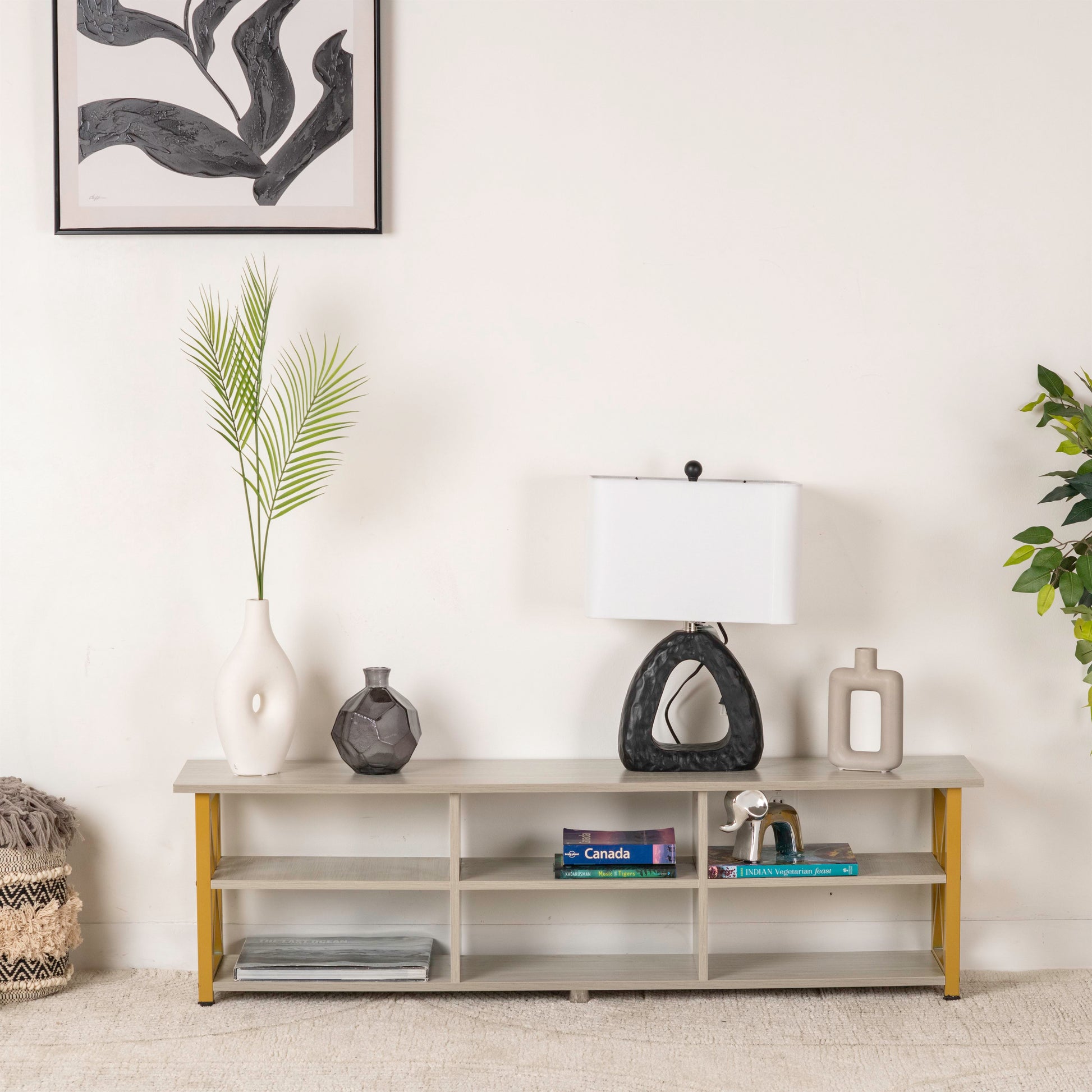 Storage: 6 open compartments for AV equipment, books, decor, or baskets.