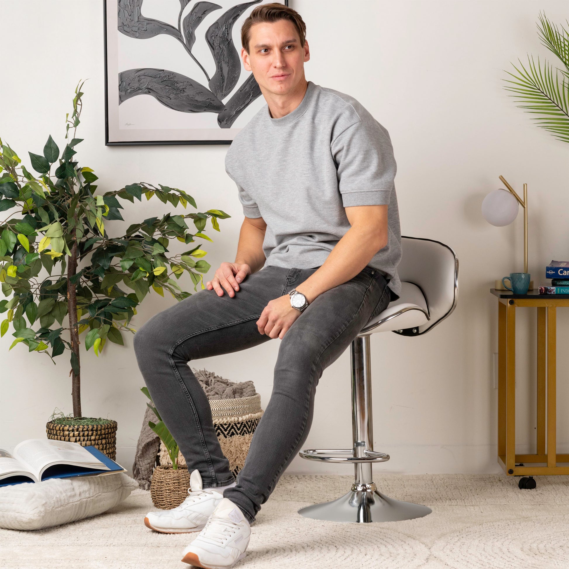 Adjustable height: easily customize seat height from 61–82 cm (24–32 in) for your counter or table.