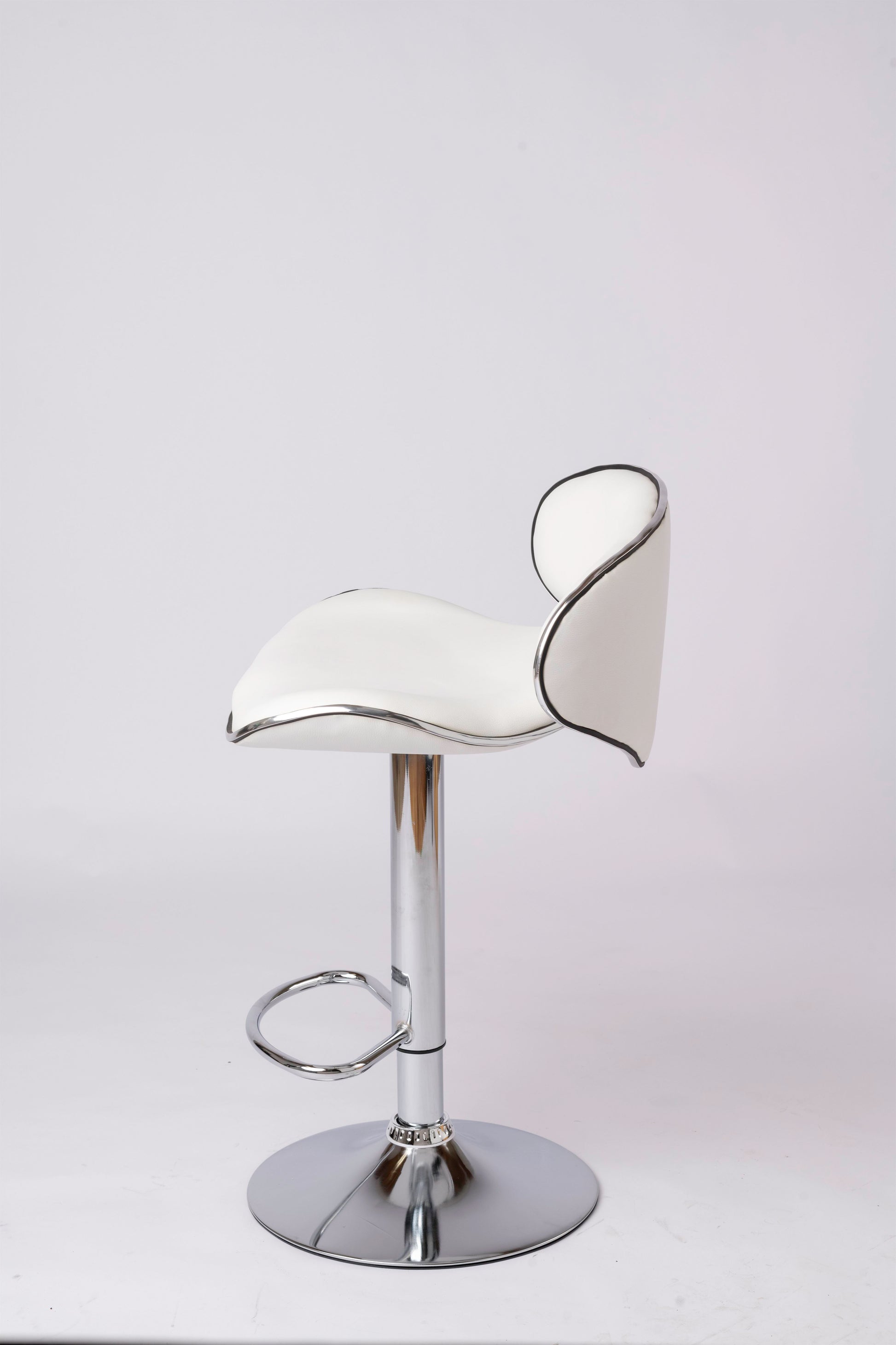 Upgrade your kitchen, bar, or counter space with this modern PU leather bar stool. Its padded seat and footrest provide comfort and support, while the adjustable height function adapts to your needs. Sturdy chrome legs and a mid-century modern design ensure durability and style for years to come.