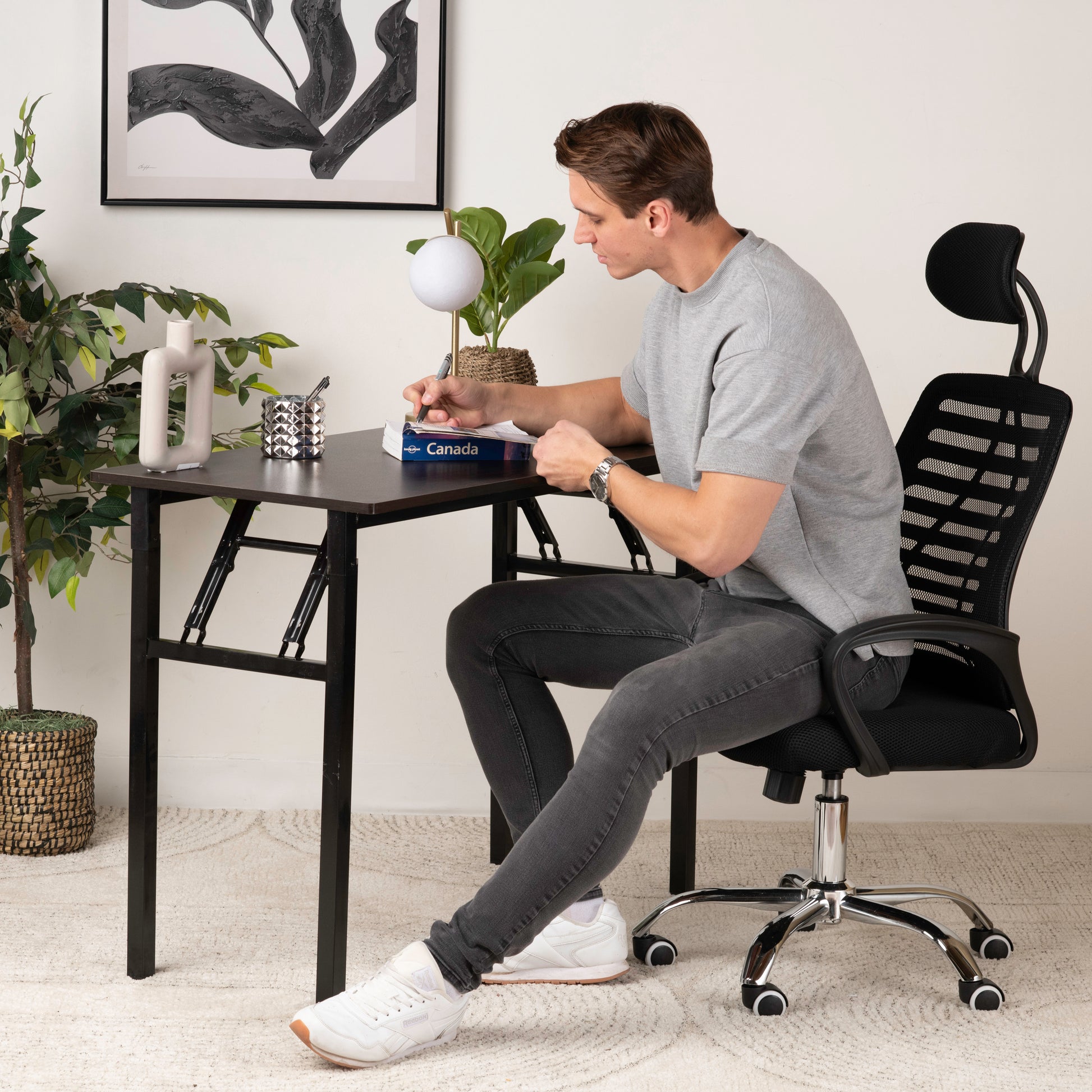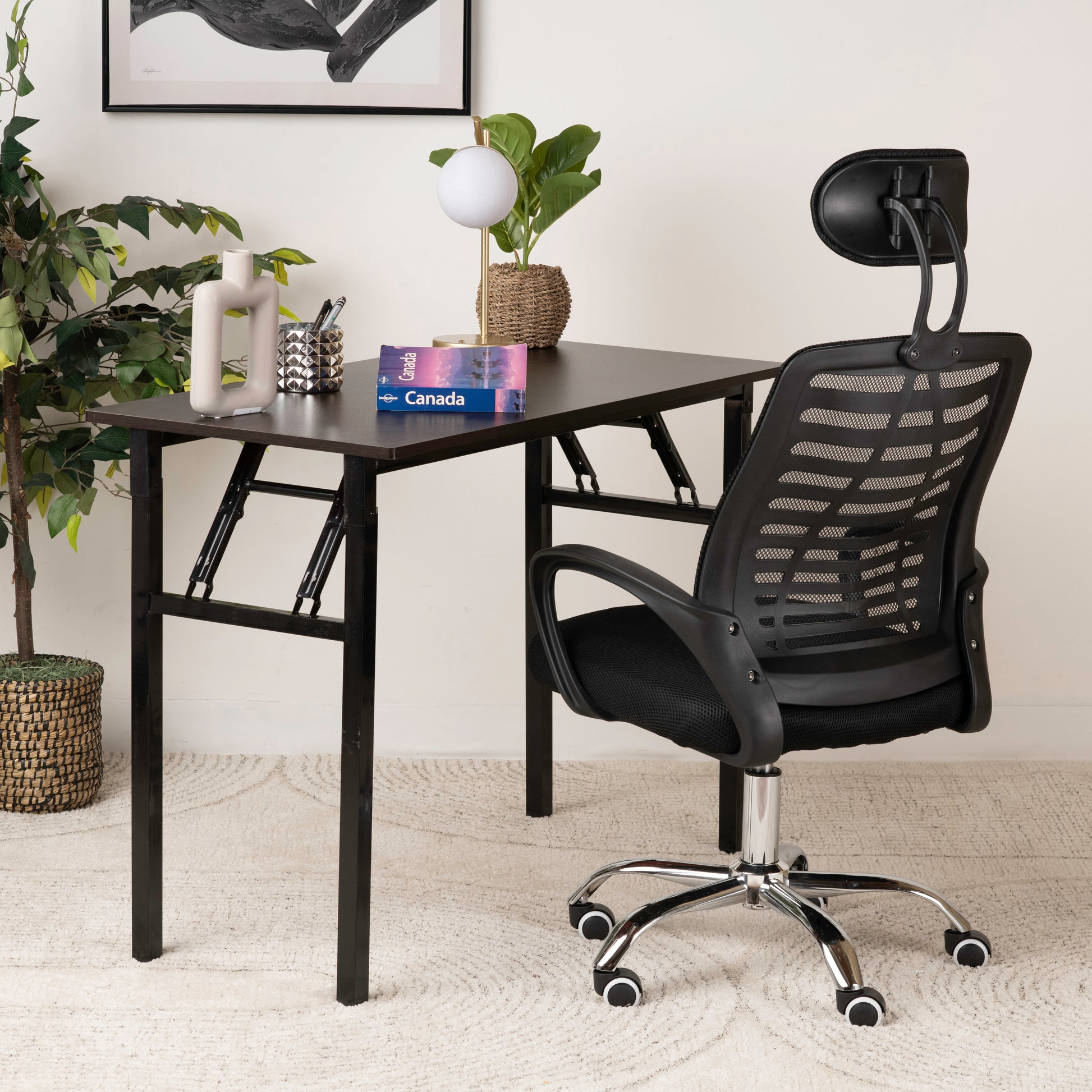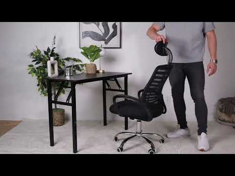 Experience comfort and productivity with this ergonomic office chair featuring a supportive headrest. Its breathable mesh back and thick elastic foam seat cushion keep you comfortable, while lumbar support and adjustable features ensure proper posture. Height-adjustable seat, tilt-back recliner, and 360° swivel offer full ergonomic flexibility. Durable construction and floor-friendly casters make it a practical and stylish choice for any home or office.
