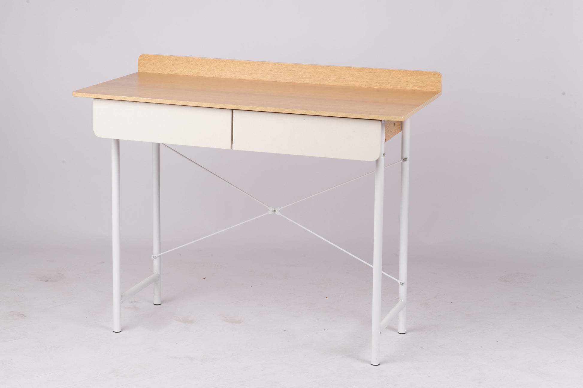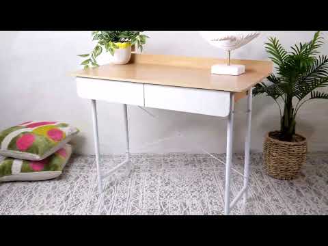 This modern-style computer desk features a smooth, waterproof wood surface that’s easy to maintain, while the solid metal frame provides strength and durability. With its protective edge and two drawers, it keeps your workspace clutter-free and practical. Its compact design makes it a great fit for small spaces, dorms, or home offices, while its minimalist look complements any décor.