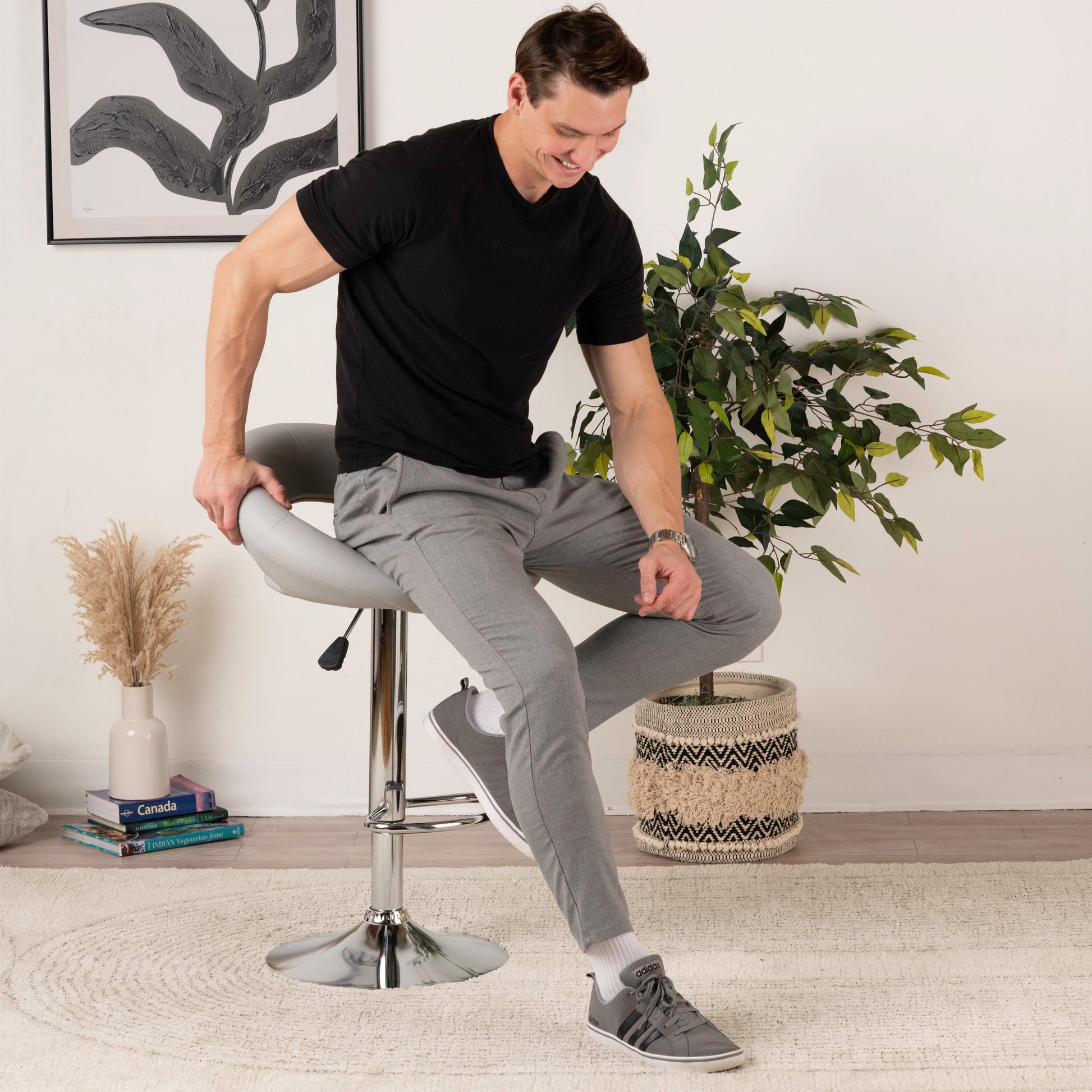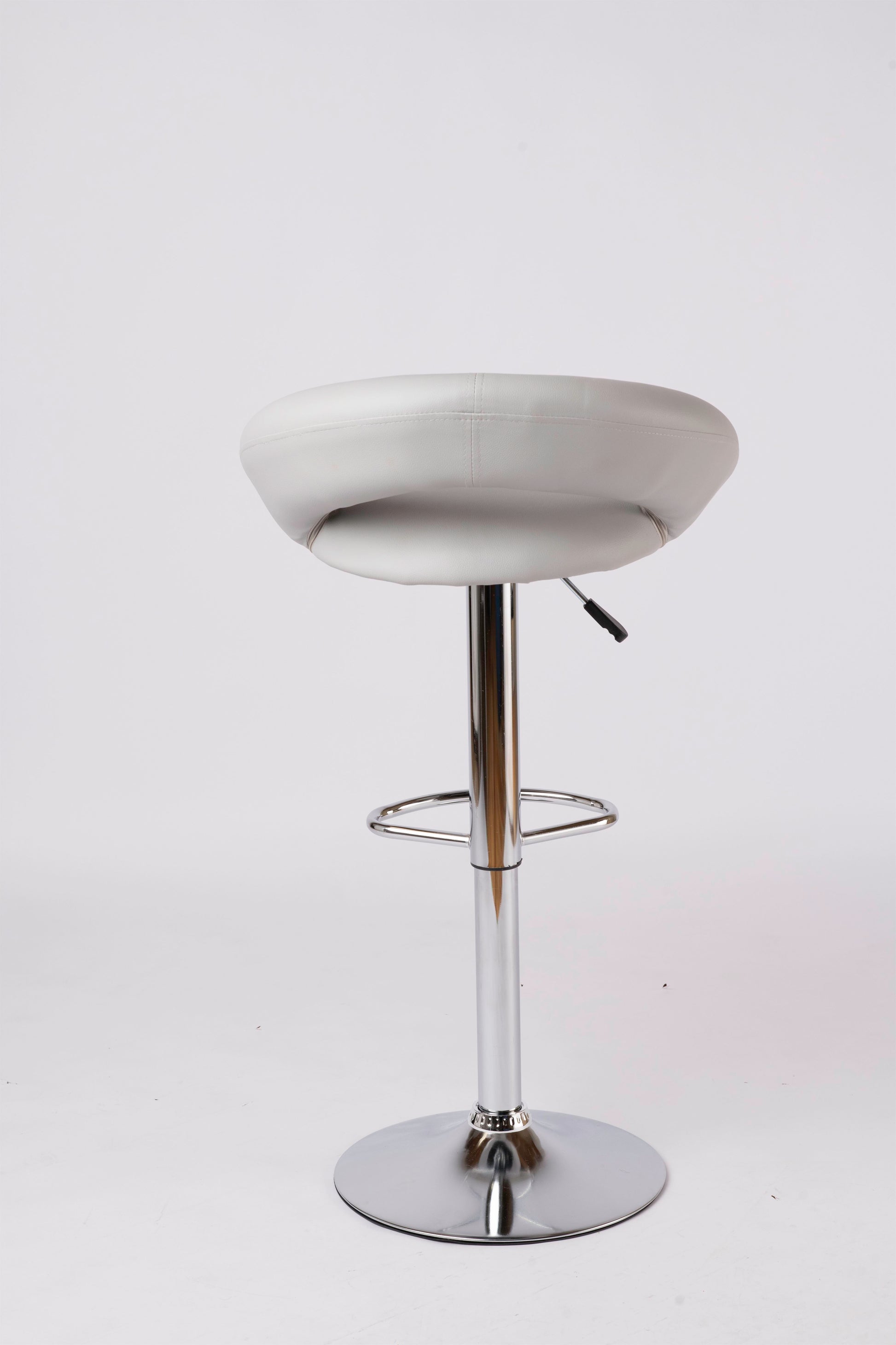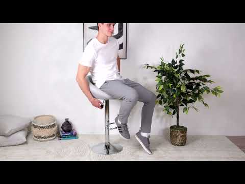 Enjoy comfort and style with this modern PU leather bar stool. Its adjustable height, padded seat, and footrest create a perfect dining or counter seating solution, while the sturdy chrome base ensures stability. The mid-century modern design adds sophistication to any home or kitchen.